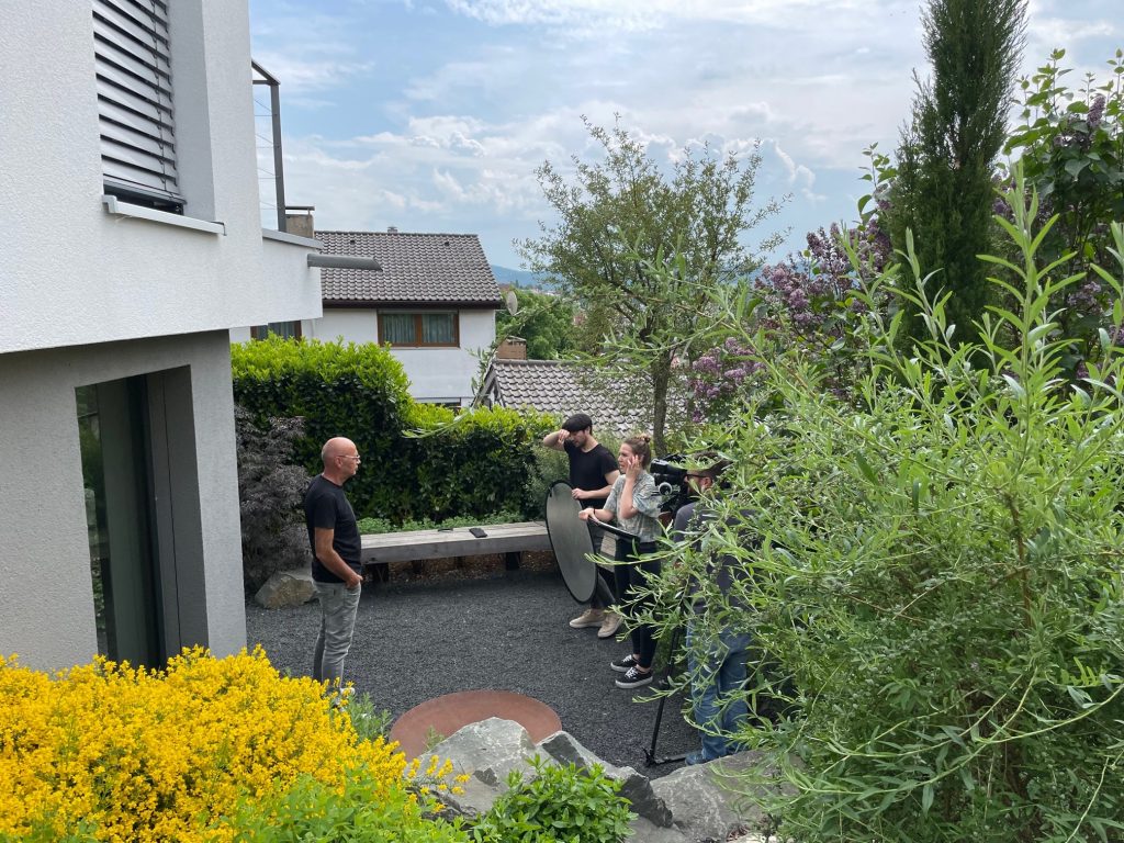 – Das Filmteam von Bauen und Wohnen interessiert sich für unseren Naturchitektur-Garten in Beilstein und interviewt den Bauherren (-: