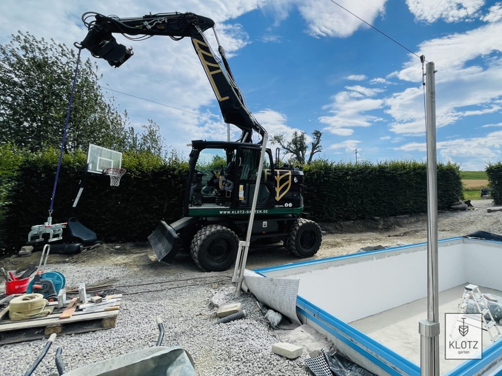 Nach der Planung kann gebaggert werden. Abschnitt 1 Poolbau hat begonnen…